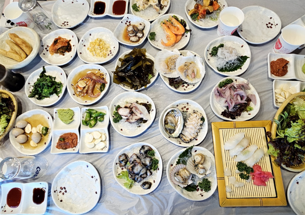 음식점 바로 앞에 바다가 있어 뷰가 좋았습니다. 저녁에 방문해 금방 어두워져서 음식점 안에서 뷰 사진은 못 찍었어요(해삼, 멍게, 전복, 소주먹느라 시간이 금방 지나간건 비밀).