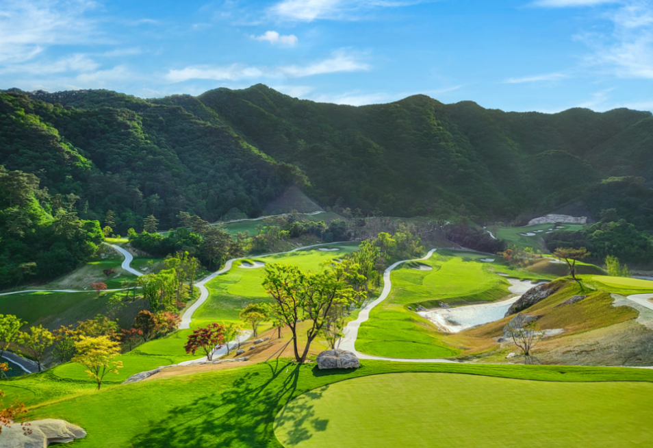 암반과 호수, 웨이스트 벙커 등 자연 요소를 활용한 시그니처 홀(9번, 12번, 14번)이 있으며, 클럽하우스 옥상 공원에서 코스 전경을 조망할 수 있습니다.